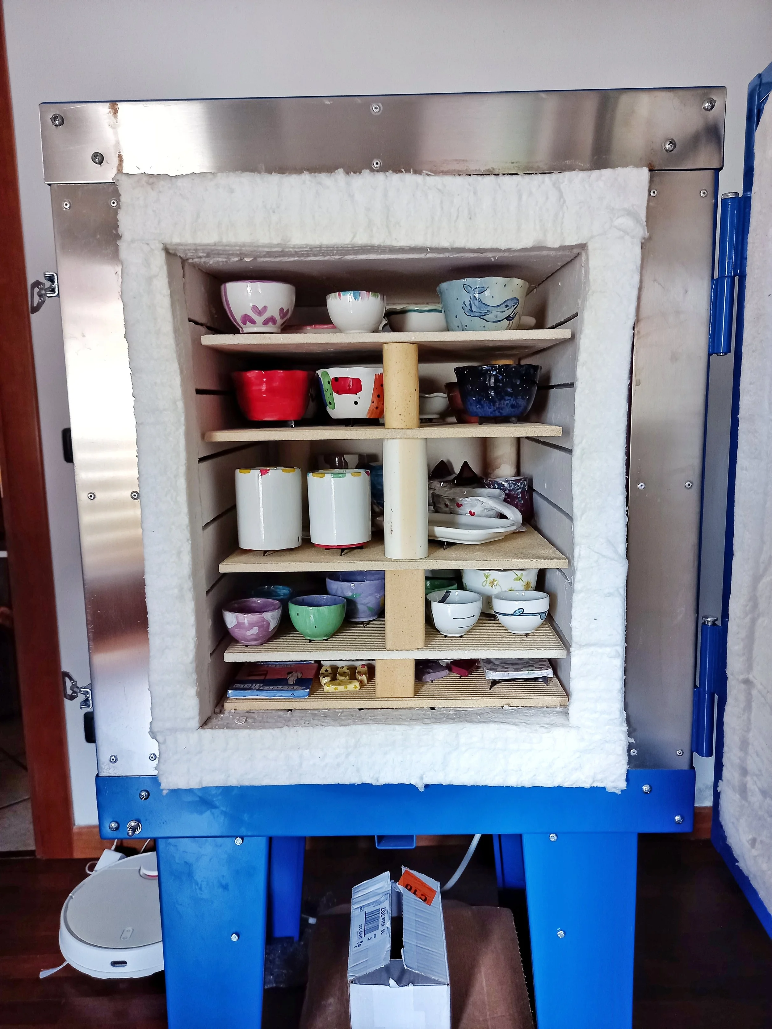 Il nostro forno ha la camera delle seguenti misure interne: 45 x 45 x 55 cm, e cuociamo la ceramica a una temperatura di 980°C, esclusivamente con energia elettrica proveniente da fonti rinnovabili (perché crediamo molto nel cercare di fare il possibile per rendere ecologicamente la Terra un posto migliore, e all’ambiente ci teniamo proprio tanto…).
